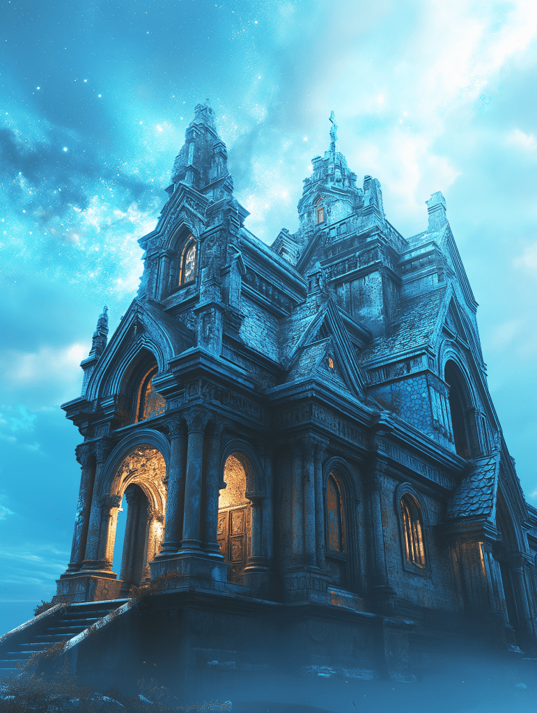 Une sphère transparente englobe le mausolée et semble empêcher toute lumière extérieure au spectre bleu de pénétrer.
