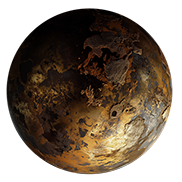 PerN-L, la planète mordorée, est extrêmement difficile à scanner. Les matériaux majoritaires, probablement de l’or et du cuivre, renvoient les ondes de scan. Elle danse un étrange ballet avec le soleil, tournant autour de lui sur la moitié de son orbite, puis c’est lui qui tourne autour de la planète sur la même distance d’orbite.